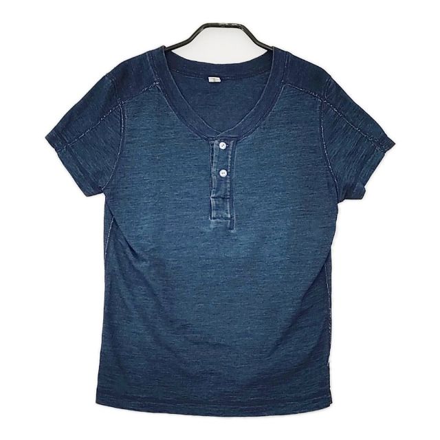 正藍屋 日本製 プルオーバー ヘンリーネック インディゴ 半袖Tシャツ カットソー ネイビー レディース 正藍屋【中古】5-0607S∞