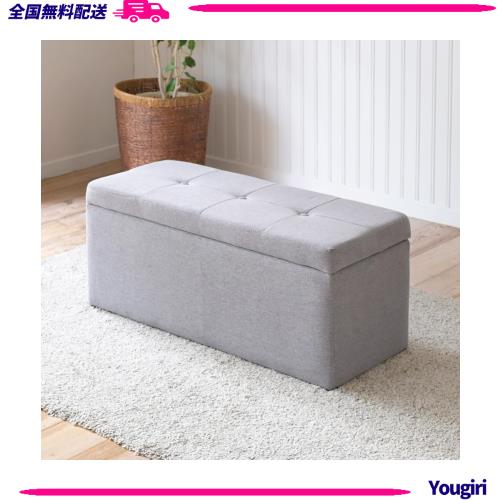 [山善] 収納スツール ダブルサイズ 2人掛け ベンチ 収納 オットマン 収納ボックス 椅子 幅90×奥行37×高さ40? 完成品 グレー FBS-90(GY