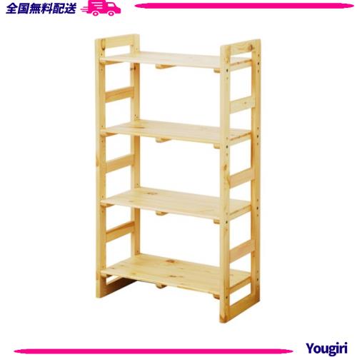 山善 ウッド ラック 幅60×奥行30×高さ110cm 4段 木製 棚板高さ調節可能 組立品(工具付き) ナチュラル SPR11060(NA)