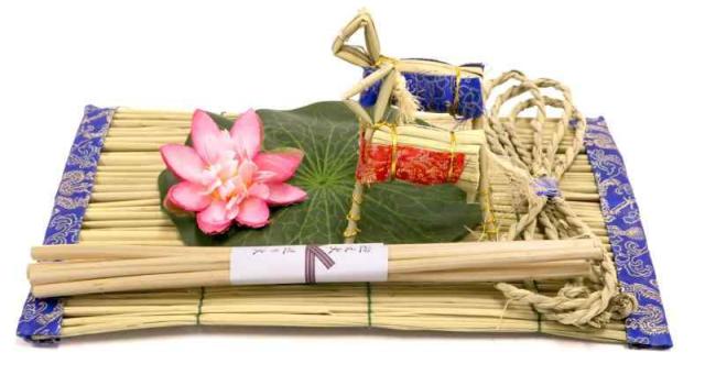 セット内容:マコモ・縄・麻ガラ ・ハスの葉(布)・ハスの花(布) ・牛馬(1対)