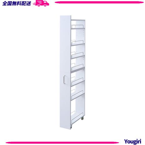 山善(YAMAZEN) キッチンワゴン (隙間収納) 幅18×奥行49×高さ172cm スリム 取っ手 隠しキャスター 棚 キャスター付きワゴン ワゴン ラッ