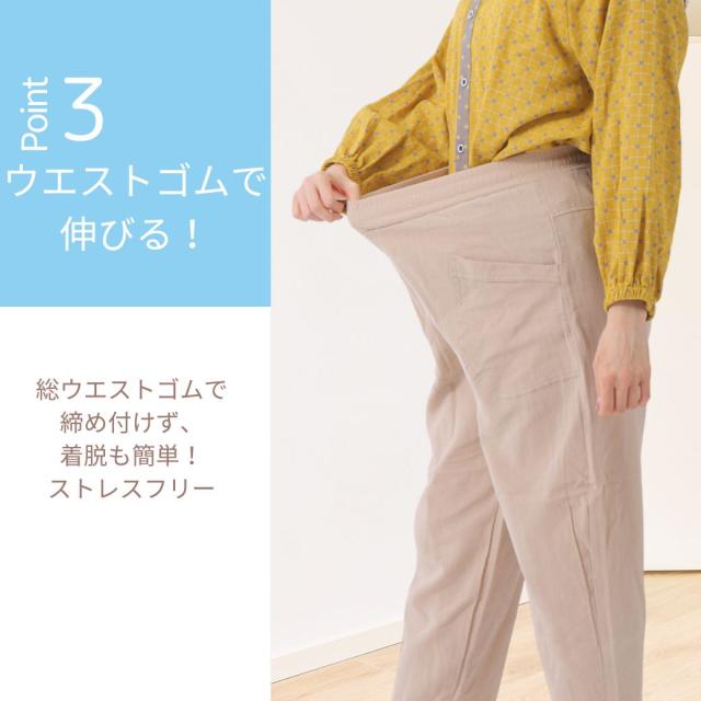 シニア ファション パンツ レディース ズボン おばあちゃん 80代 70代 柔らか ウエストゴム 人気 総ゴム コクーンパンツ ワイド 秋 綿100% 丈直し不要 敬老の日