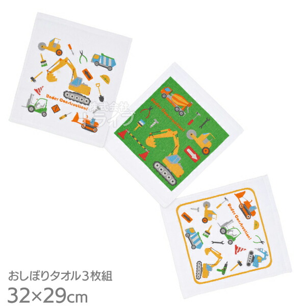 | はたらくクルマの綿100%のおしぼりタオルです。おしぼりとしてだけでなく、おでかけタオルとしてもピッタリです。洗い替えに便利な3枚セットです。 | |