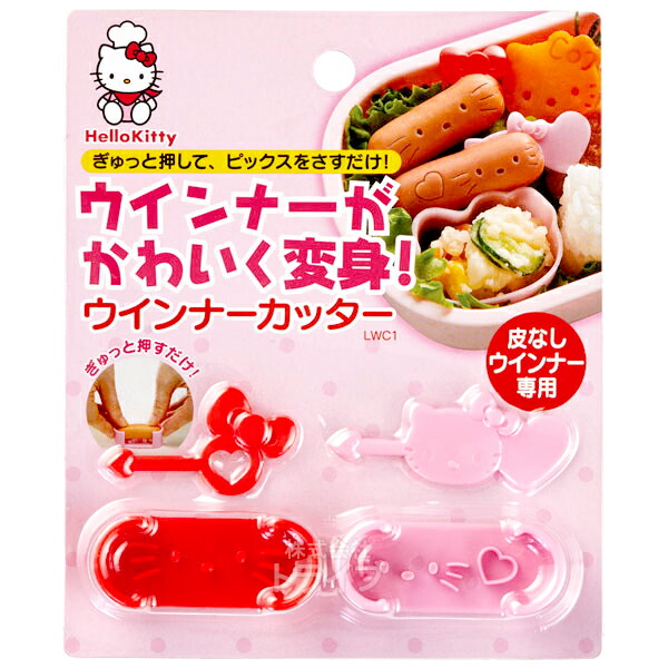 | ハローキティのかわいいウインナーカッターです。ギュッと押すだけでウインナーが可愛く大変身♪付属のピックを挿したら可愛いお弁当の出来上がりです! | |