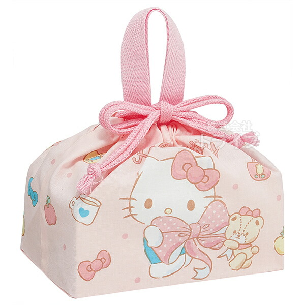| ハローキティのランチ巾着です。当店で取扱いのお弁当箱や、トリオセットが入る大きさ。お弁当箱とセットで揃えても、違う絵柄のお弁当箱を合わせても楽しめます♪ | |