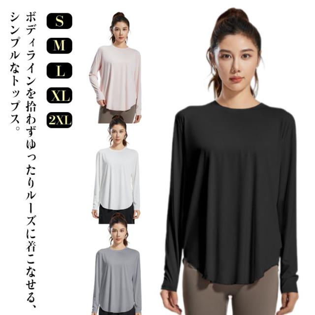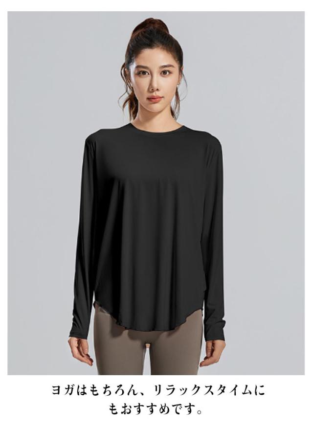 ヨガウェア Tシャツ 長袖 レディース ヨガ トップス 長袖 tシャツ ットヨガウェア 涼しい ゆったり 通気 速乾 吸汗 ストレッチ ランニングウェア カットソー スポーツウェア ジムウェア シャツ ピラティス ダンス シンプル 送料無料