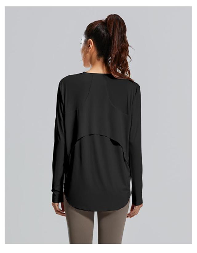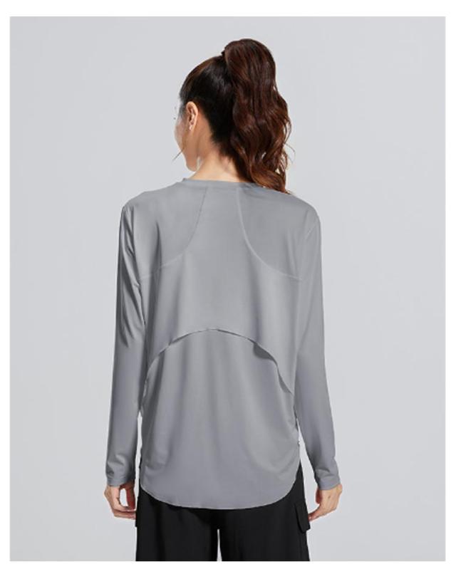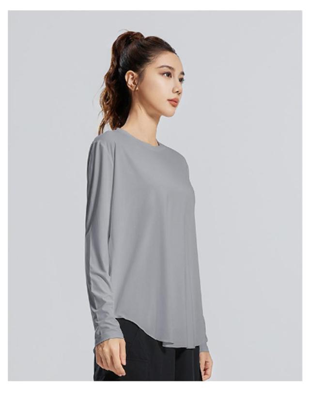 | ボディラインを拾わずゆったりルーズに着こなせる、シンプルなトップス。 柔らかくスルっとした肌触りの生地は、伸縮性に優れ蒸れにくい。 ポリエステルとスパンデックスから作られている汗速乾性の高いスポーツウエアー。ヨガやフィットネスにもお勧め! 袖先はピタッとフィットするので手の甲にかからず、シルエットも綺麗です。 ヒップまで隠れるロング丈で、後ろを気にせずにヨガを楽しめます。 肩がつっぱらないデザインで、腕の動きを妨げない楽な着心地。 ヨガはもちろん、リラックスタイムにもおすすめです。 | |