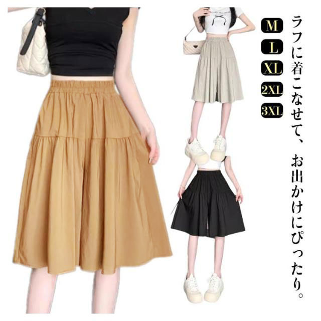 | ラフに着こなせて、お出かけにぴったり。 膝丈のゆったりAラインシルエットで、脚が細く見える。 ハイウエストでスタイルアップ効果も。 ゆる可愛いビッグシルエットが今風。 ウエストゴムなのでフィット感があり、お着替えも簡単! スカートのようなカタチ。体のラインを拾いにくく、気になる部分もふんわりカバー。 オン・オフ問わず着回しが可能なので、オフィス、カジュアルにも重宝します。 | |
