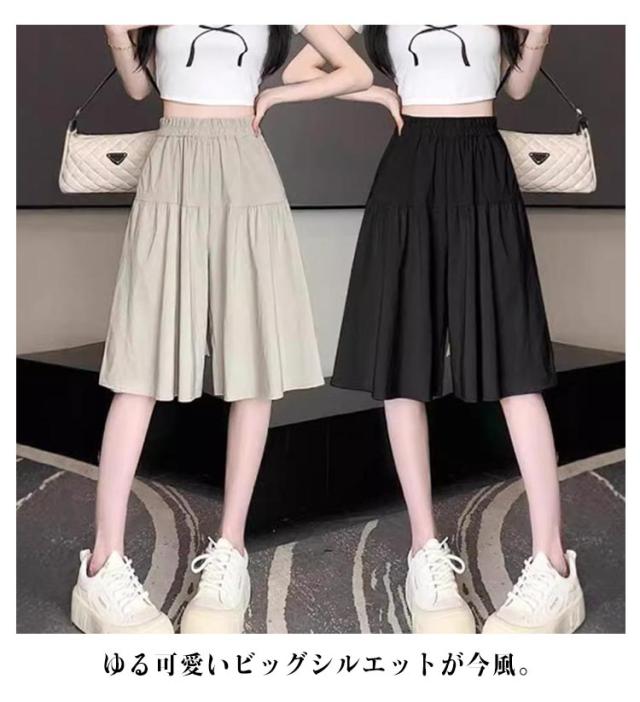 キュロット 五分丈 ワイドパンツ ガウチョパンツ レディース ショートパンツ 無地 薄手 ゆったり 涼しい 膝丈 大人 カジュアル スカーチョ 夏 ハイウエスト 着?せ スカート風 きれいめ おしゃれ キュロットパンツ 送料無料