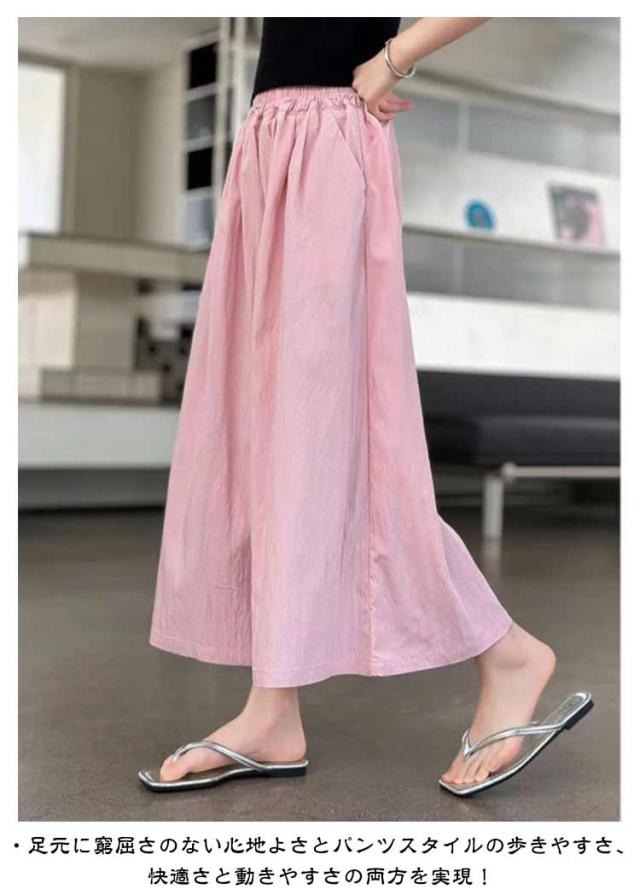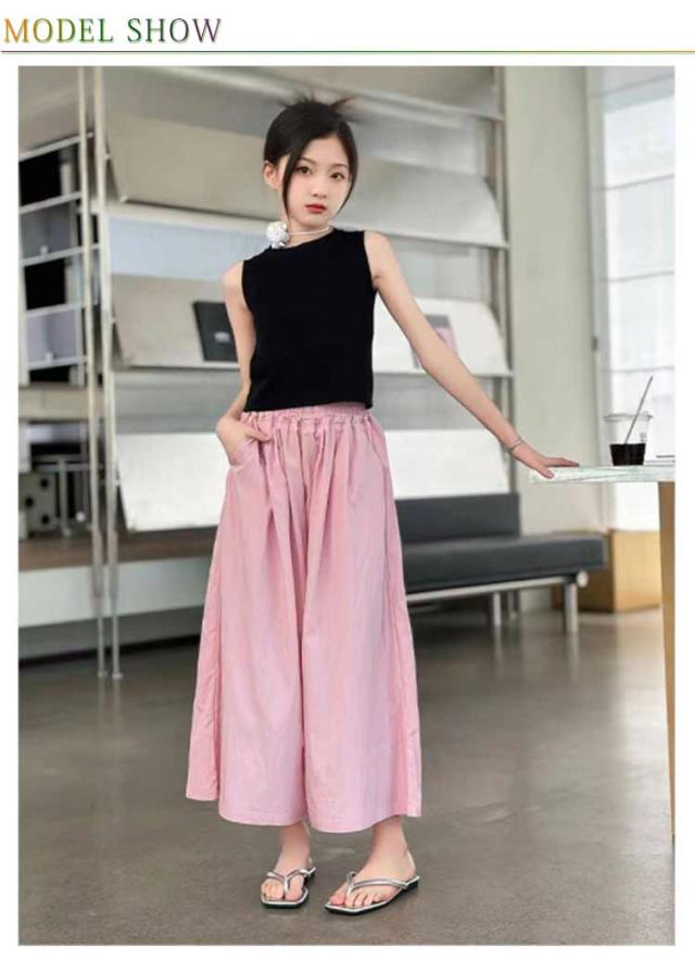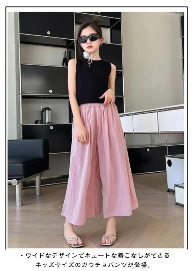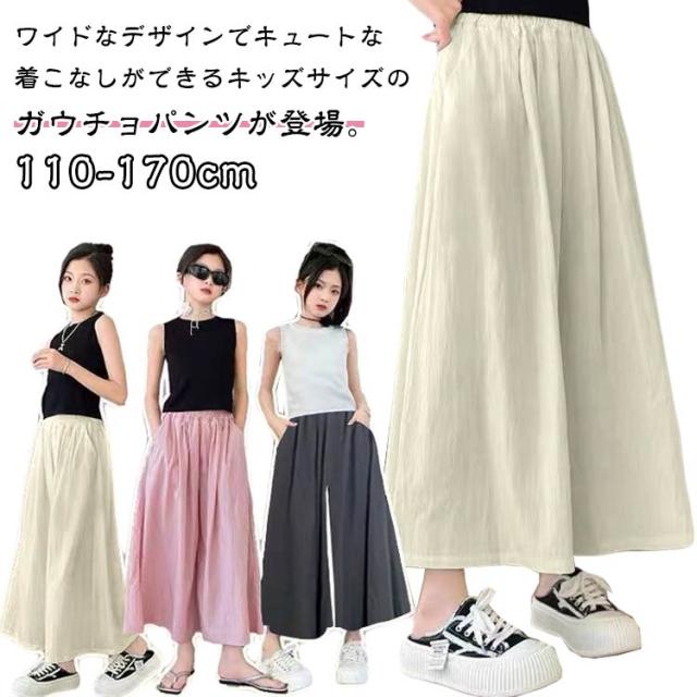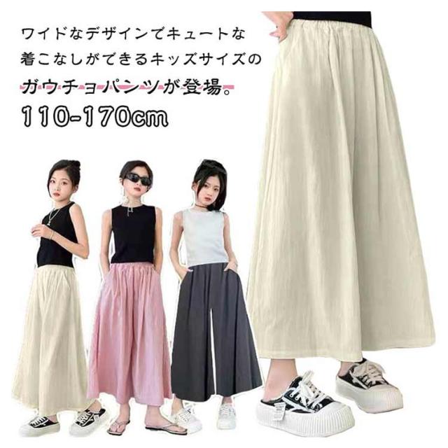 ガウチョパンツ ワイドパンツ ロングパンツ チェック柄 スカーチョ キッズ 子供服 ジュニア 女の子 ボトムス フレア ウエストゴム 薄手 スカーチョ ロングキュロット 長ズボン ひらひら 無地 ガーリー おしゃれ キュート 着回し お出かけ 通学 110-170cm 送料無料