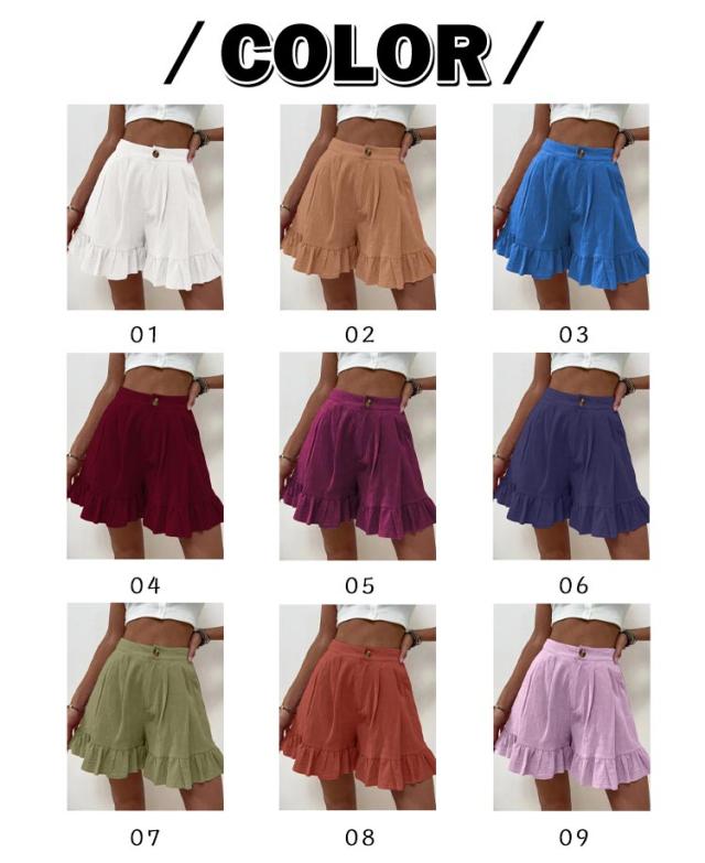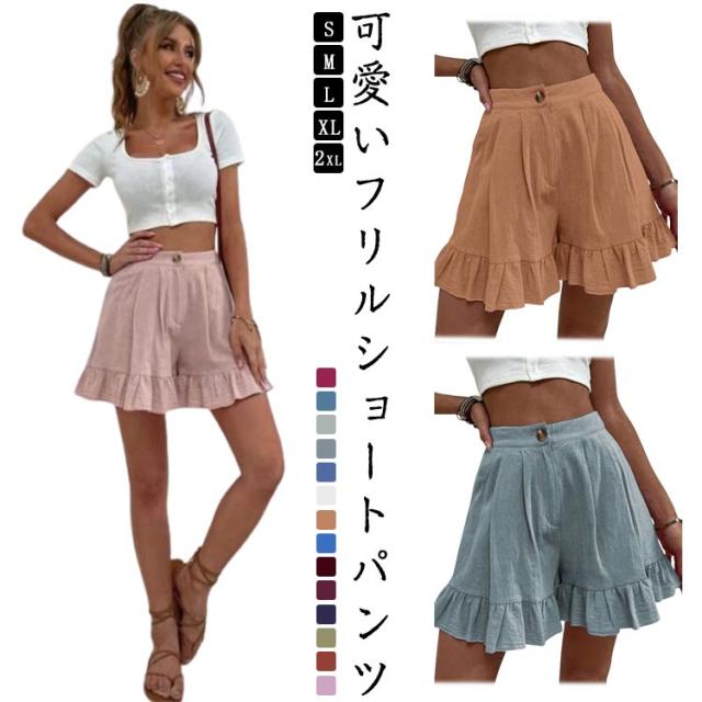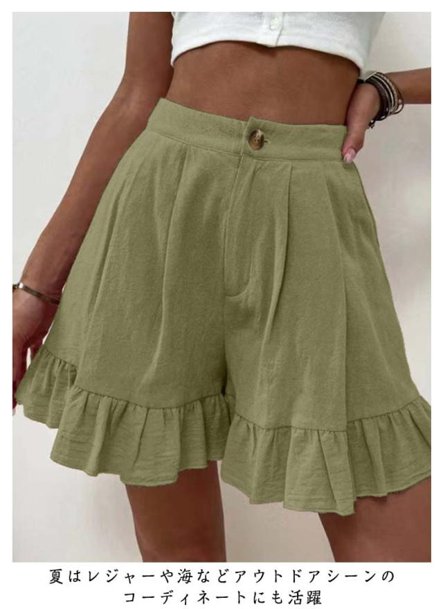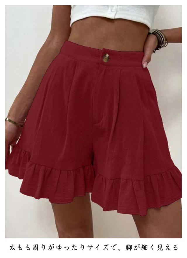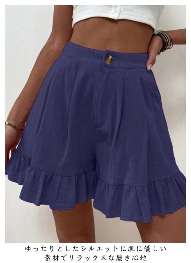 ショートパンツ レディース 短パン フリルショートパンツ ワイド ショーパン 無地 サマーパンツ ハーフパンツ ルームウェア スポーツウェア ワイドパンツ ミニ丈