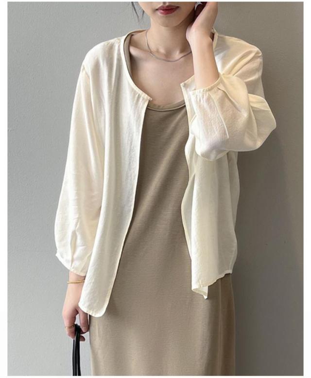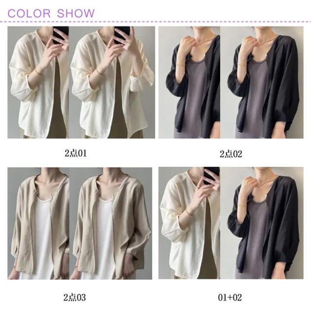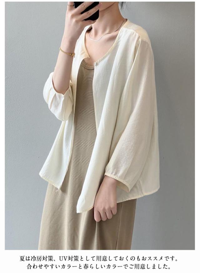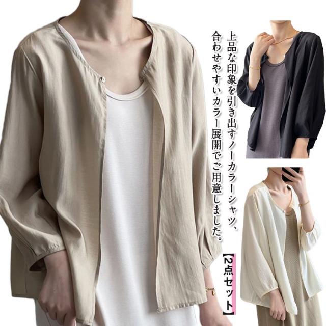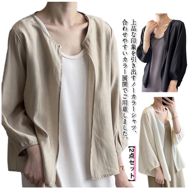 カーディガン レディース 2点セット 薄手 春アウター シアーシャツ シアートップス ノーカラー サマーカーディガン シアーカーディガン シアー シャツ 春 夏 シンプル レイヤード 大きいサイズ 大人女性 冷房対策 紫外線対策 通勤 M L XL 2XL 3XL
