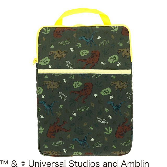 | ジュラシックワールドのタブレット端末の収納ケースです。持ち手がついているので、移動教室や塾など、持ち運びに便利。ランドセルに入るサイズで、フロントにはポケット、裏にはお名前を書けるタグ付きです。 | |