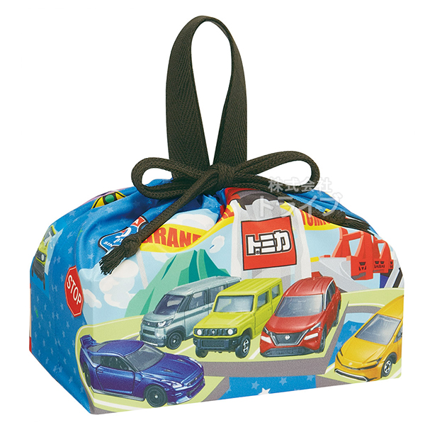 | トミカのランチ巾着です。当店で取扱いのお弁当箱や、トリオセットが入る大きさ。お弁当箱とセットで揃えても、違う絵柄のお弁当箱を合わせても楽しめます♪ | |