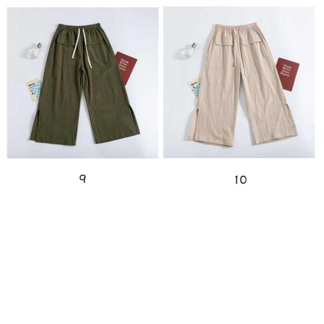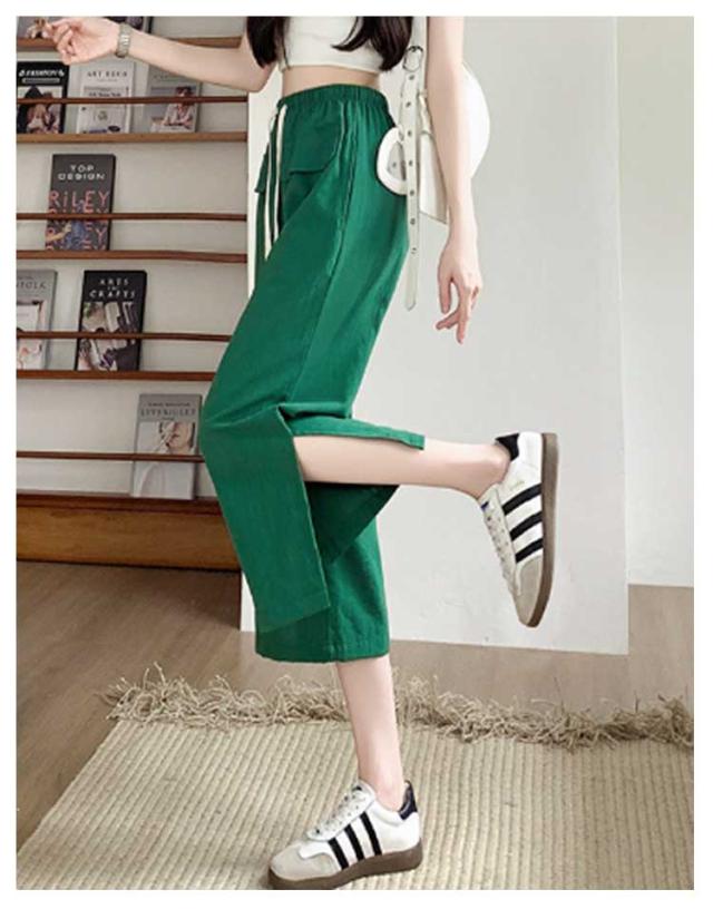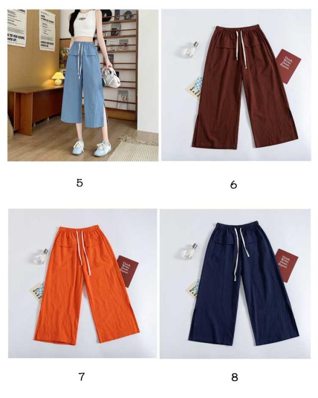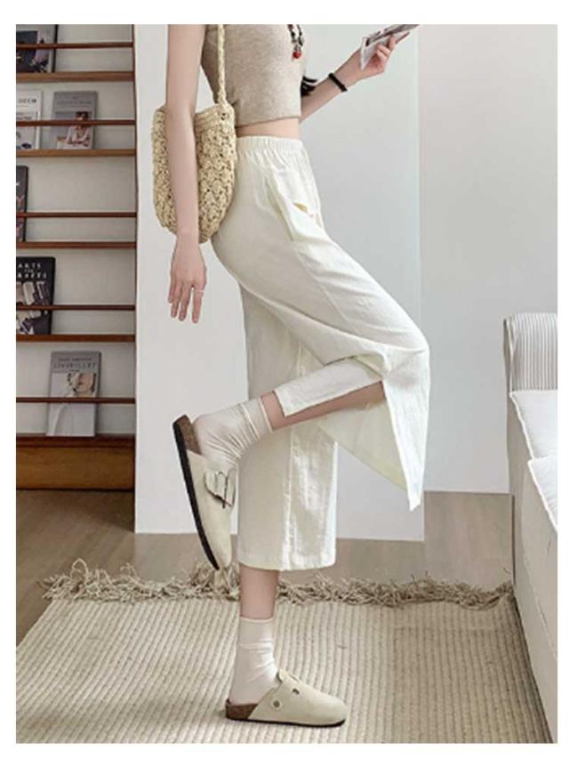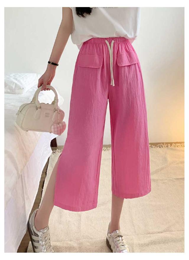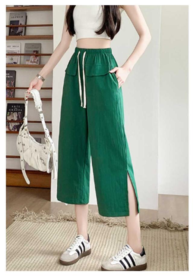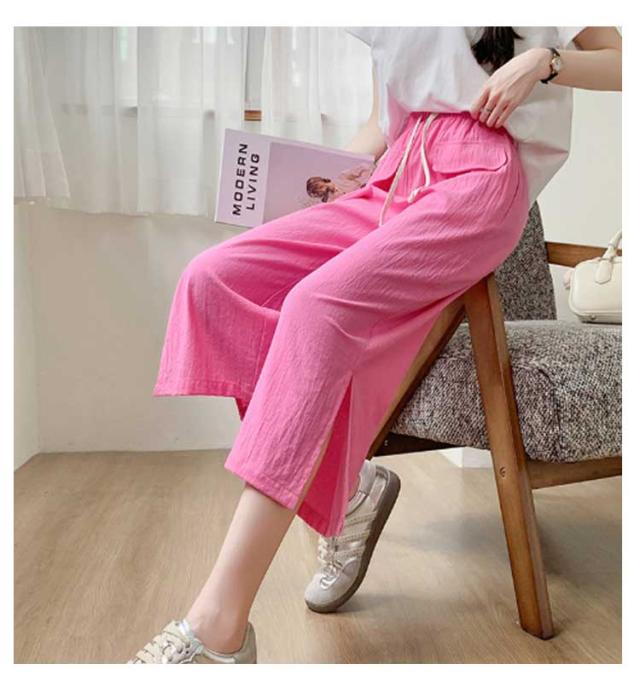 レディース ガウチョパンツ ワイドパンツ クロップドパンツ ボトムス サイドスリット ウェストゴム 7分丈 春夏 無地 シンプル ゆったり お洒落 美脚 柔らかい 体型カバー ポケット付き 送料無料