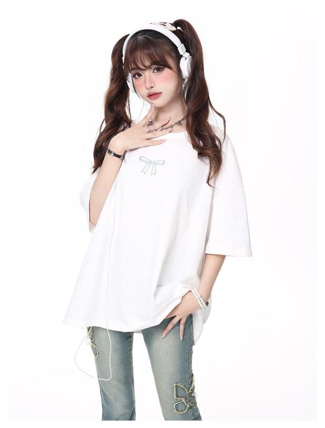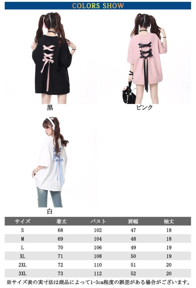 Tシャツ トップス 半袖 サブカル系 地雷系 リボン 原宿系 夏 レディース 韓国ファッション おしゃれ ゴシック 姫系 プリント かわいい 送料無料 半袖Tシャツ コットン レディース 地雷コーデ 綿 ガーリー オーバーサイズ かわいい バックリボン 地雷系 量産型 原宿系