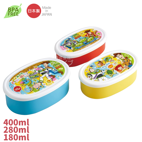 | トイストーリーの3つセットになったケースです。デザートケースやおかず入れ、小物入れ、お菓子を入れるのにも便利♪3つあるので使い分けができます。フタを外せば電子レンジOK! | |