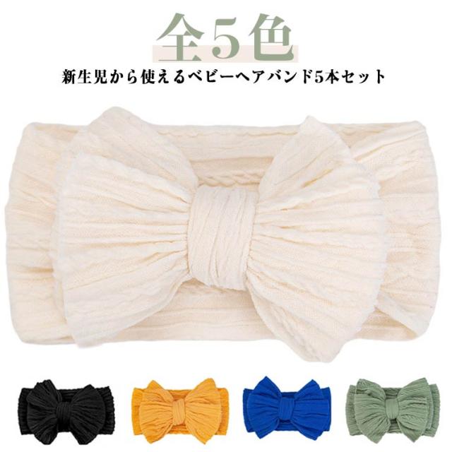 | 新生児から使えるベビーヘアバンド5本セット 男の子も女の子もOK! 無地のビッグリボンで写真映え 出産祝いギフトにもぴったり! | |