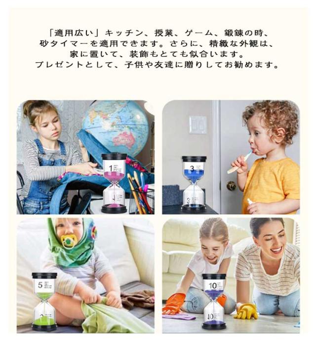 | 1分+3分+5分+10分+15分+30分【異色6個セット】 カラフルな砂時計 ●「品質&耐久性」砂時計タイマーは耐久性と安全性を兼ね備えたPVCとホウケイ酸塩ガラス管と砂で作られており、壊れにくく、長くお持ちできます。 ●「カウント時間」それぞれの砂時計の時間は違うです。1 分、3 分、5 分、10 分、15 分、30 分各 10 % で一度に偏差可能です。 ●「クリアなデザイン」すべて砂タイマーの色は違う時間を代表します。 ●「時間の流れを生き生きと解釈した」砂時計の砂も派手で明るすぎない とてもいい色で可愛かったです,砂時計を置くと、砂がゆっくりと流れ始めます。砂時計をシームレスにつなぎ、時間の流れを生き生きとイメージし、生命の美しさを持っています。 ●「適用広い」キッチン、授業、ゲーム、鍛錬の時、砂タイマーを適用できます。さらに、精緻な外観は、家に置いて、装飾もとても似合います。プレゼントとして、子供や友達に贈りしてお勧めます。 | |