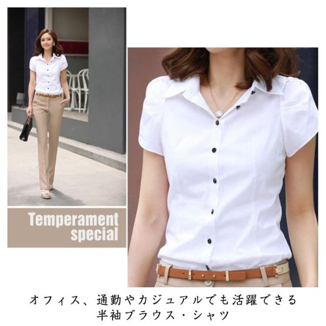シャツ 半袖 レディース トップス 襟付き シャツブラウス 春 夏 秋 ブラウス Yシャツ 制服 大きいサイズ オフィス カジュアル 無地 シンプル 通勤 OL ホワイト ブラック