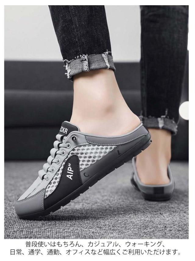 かかとなし スニーカー メンズ スニーカーサンダル サボサンダル 通気性 涼しい かかとなしサンダル カジュアル サンダル スリッパ レースアップ 外履き 歩きやすいおしゃれ 履きやすい 軽量 春夏 軽い フラットシューズ