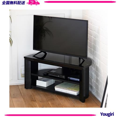山善(YAMAZEN) テレビ台 テレビボード ラック ローボード 収納 コーナー 幅80×奥行39.5×高さ40cm 組立品 シャイニーブラック SHTE-800(