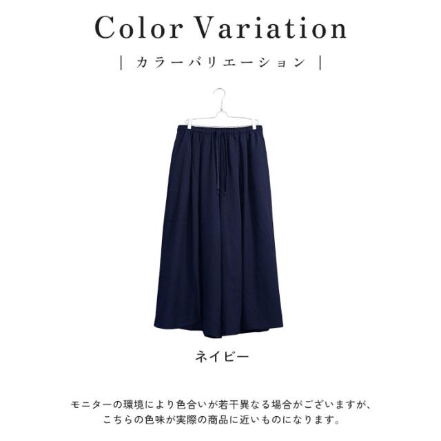 ウエストから下の窮屈感が全く無く、解放的な穿き心地でした。丈はくるぶしが隠れる長さで、ウエストは紐を絞らなくてもズレる心配はありませんでした。