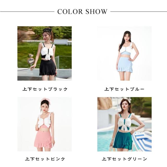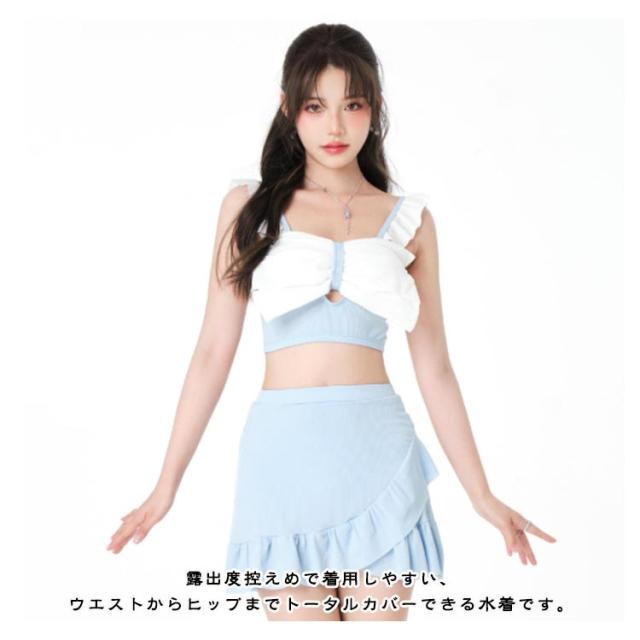 水着 セパレート 体型カバー 胸リボンデザイン カバーアップ かわいい ビキニ 水着 おしゃれ 上下セットセット 可愛い レディース お尻 太もも 水着 露出控えめ ママ水着 10代