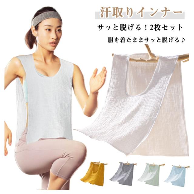 サッと脱げる!2枚セット 綿 ガーゼ 汗取りインナー サイドオープン 汗取りパッド コットン 綿 薄手 春夏 ダブルガーゼ Uネック 汗取りタオル 胸 背中 汗とりパット 汗対策 汗じみ防止 タンクトップ 下着 肌着 吸汗 大人 子供 汗ジミ防止