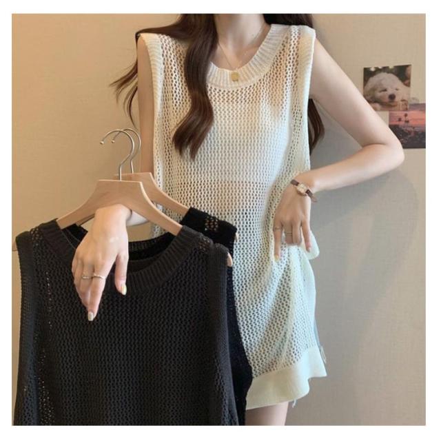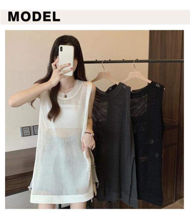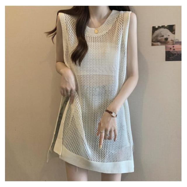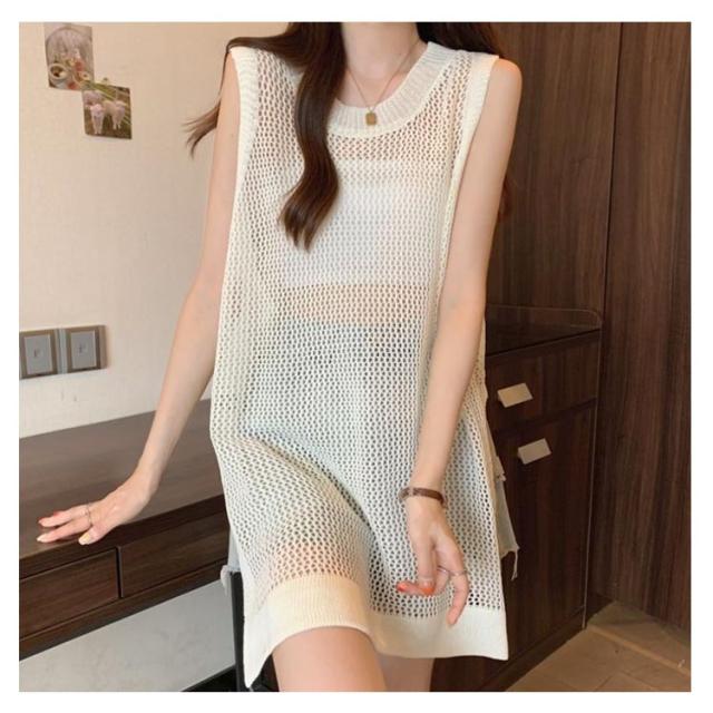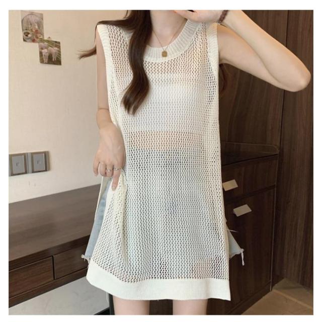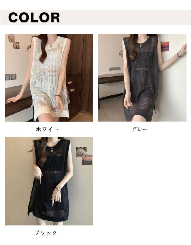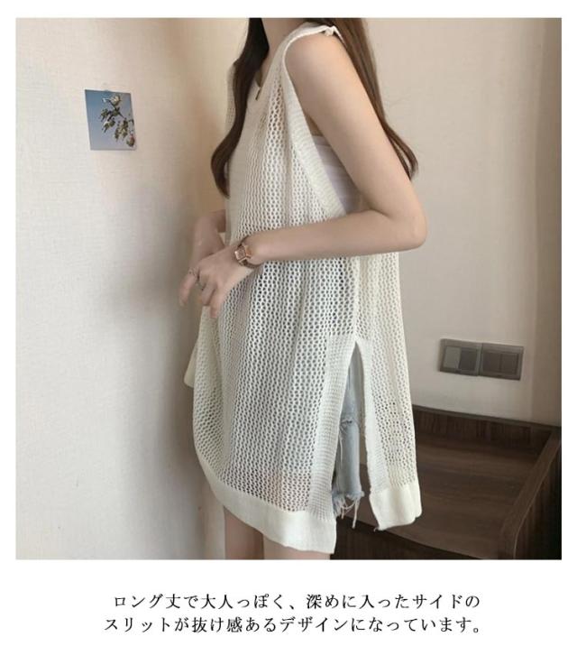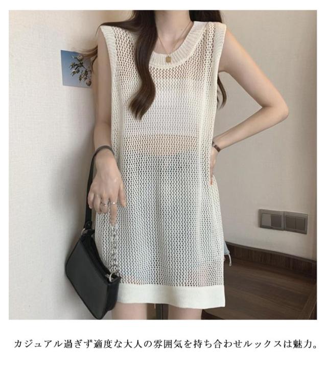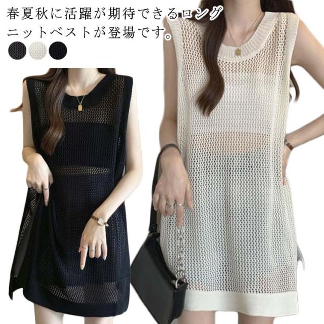 プルオーバー 柔らかい 20代 ヒップカバー 春 体型カバー おしゃれ かぎ編み 透かし編み サマーニット 透け感 レディース 重ね着 長め ゆったり ベスト 普段着 通気 ベスト かわいい 無地 シンプル クルーネック 大人 30代 40代 プレゼント ギフト