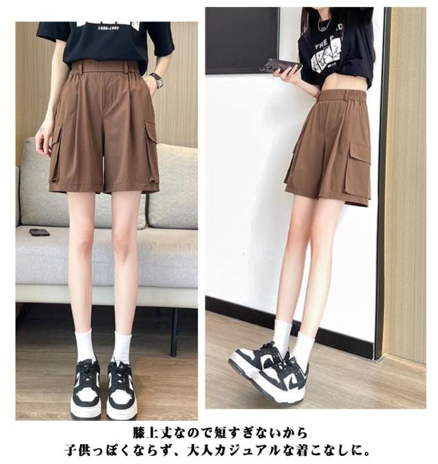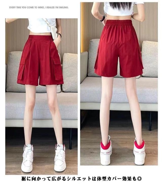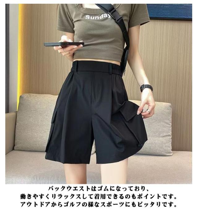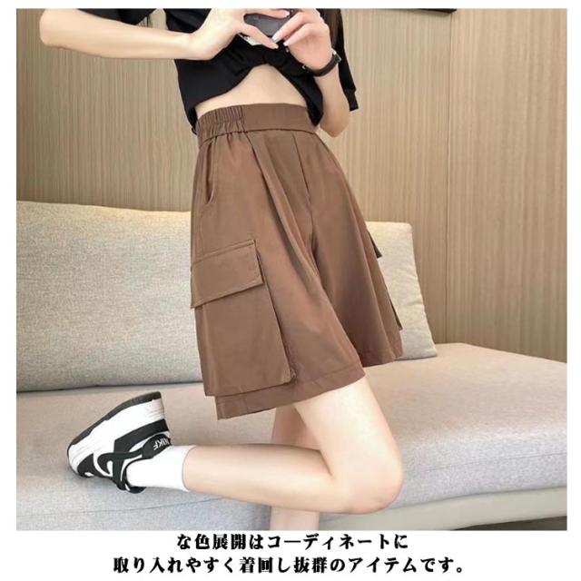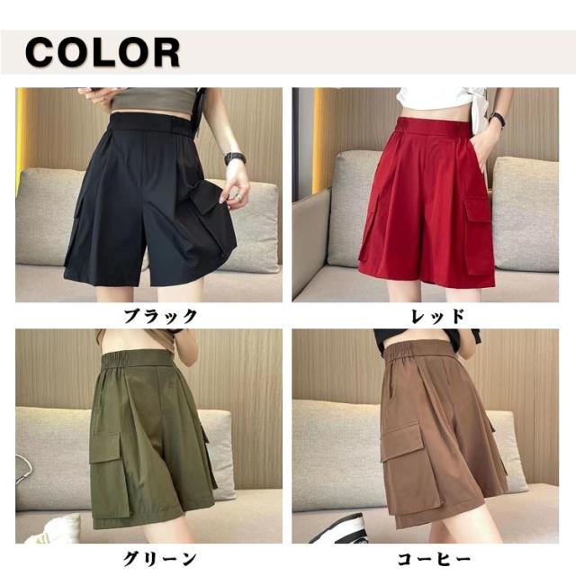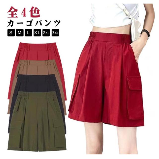 夏 半ズボン ショートパンツ カーゴ ハーフパンツ 夏服 大きいサイズ レディース ボトムス シンプル カジュアル ウエストゴム カーゴパンツ カーゴパンツ ルームウェア 膝上 ショーパン ゆったり 体型カバー 大人 部屋着 短パン 無地 パンツ 20代 30代