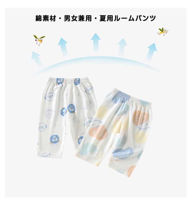 コットン 七分丈パンツ ゆったり 綿 男の子 虫よけ パジャマ ボトムス 夏用 女の子 部屋着 薄手 通気性 赤ちゃん ベビー ルームウェア キッズ服 柔らか 【2枚セット】ルームパンツ 可愛い 春