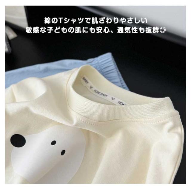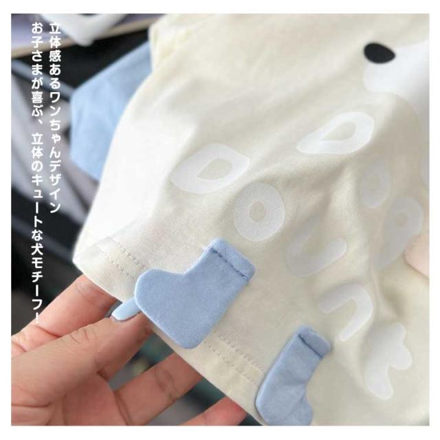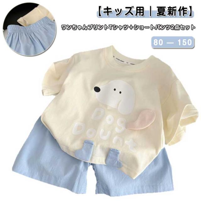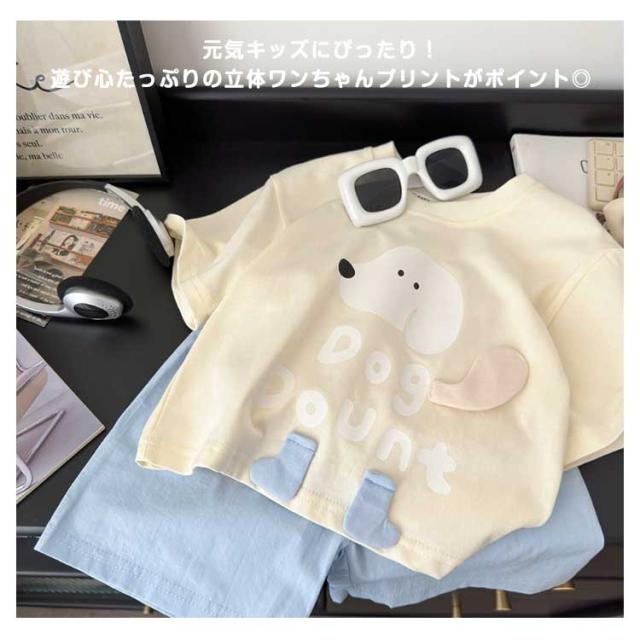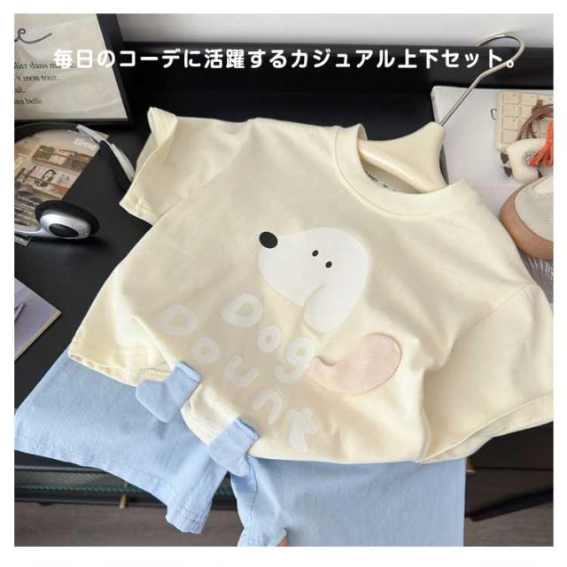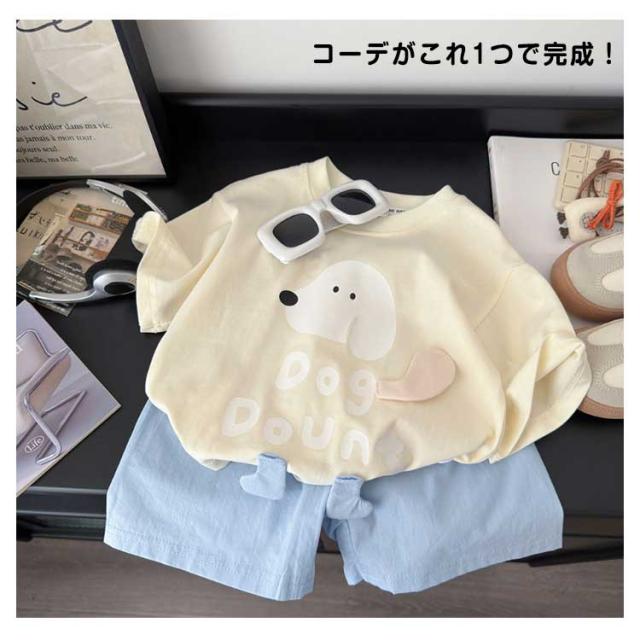 カジュアル セットアップ 上下セット キッズ 半袖Tシャツ+ショートパンツ おしゃれ 女の子 男の子 綿 コットン ゆったり かわいい ワンちゃんプリント ルームウェア 子供服 通学 通?
