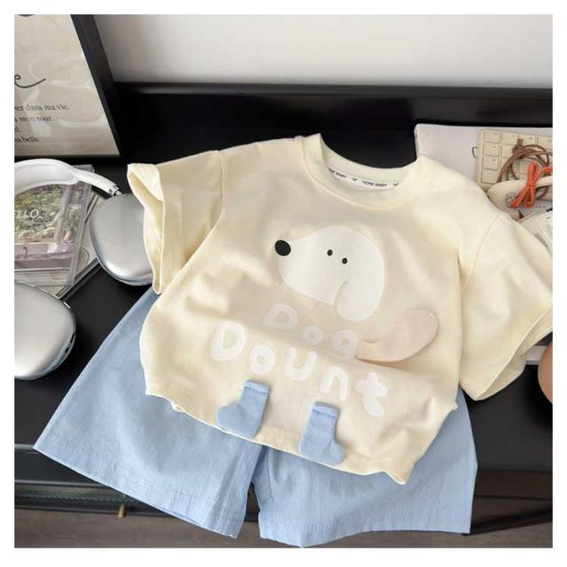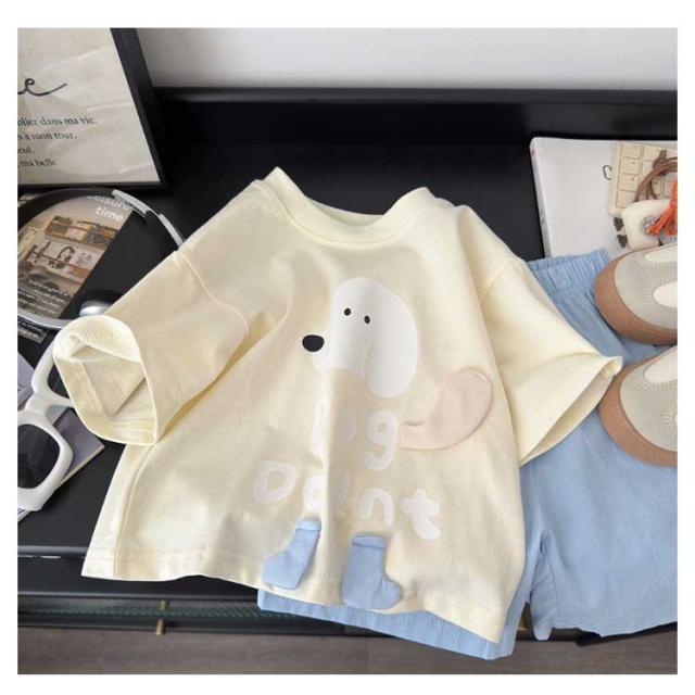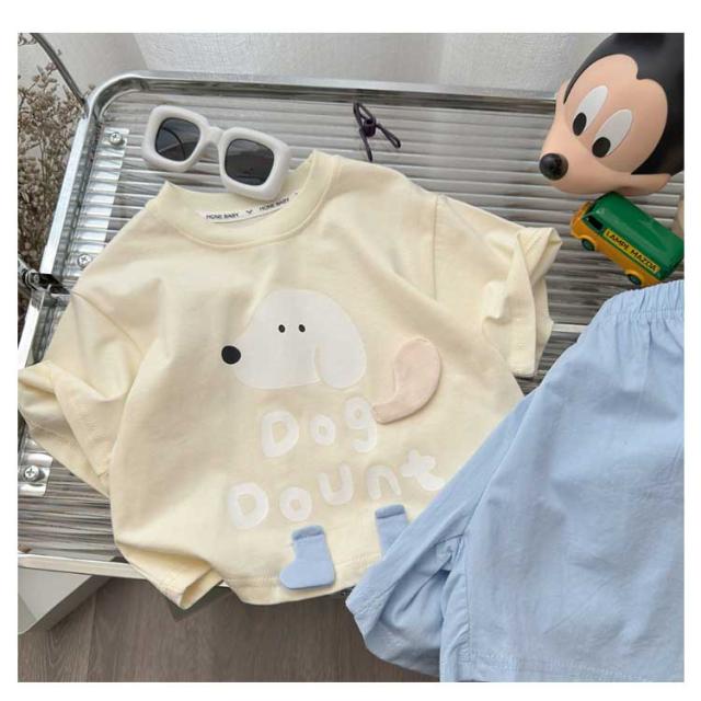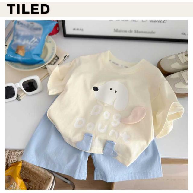 | カジュアル セットアップ キッズ ワンちゃんプリント 半袖Tシャツ+ショートパンツ 上下セット 綿 コットン ゆったり かわいい おしゃれ ルームウェア 子供服 通学 通? 儿童套装?通印花?棉t恤趣味立体小狗中小童短袖短?休??件套 【キッズ用|夏新作|ワンちゃんプリントTシャツ+ショートパンツ2点セット】 元気キッズにぴったり! 遊び心たっぷりの立体ワンちゃんプリントがポイント◎ 毎日のコーデに活躍するカジュアル上下セット。 立体感あるワンちゃんデザイン お子さまが喜ぶ、立体のキュートな犬モチーフ! 綿のTシャツで肌ざわりやさしい 敏感な子どもの肌にも安心、通気性も抜群◎ 動きやすいショートパンツ付き ゆったり設計で、アクティブなキッズも快適。 コーデがこれ1つで完成! | |