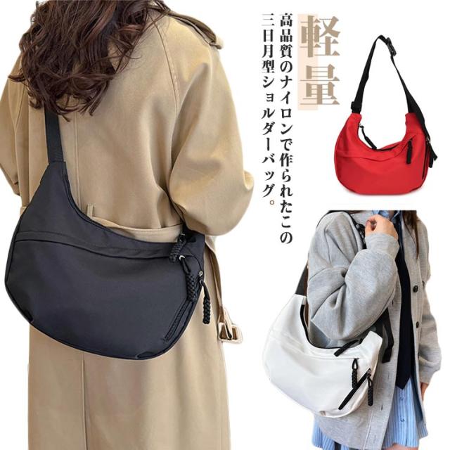ナイロン シンプル 軽量 防水 ナイロンバッグ レディース ショルダーバッグ 肩掛け 斜めがけバッグ 2way 大容量 カバン 小さめ おしゃれ 三日月型 韓国 女性 バッグ 旅行 修学旅行 ファスナー付き 撥水 ポケット多い サブバッグ ショルダーバッグ ギフト 40代