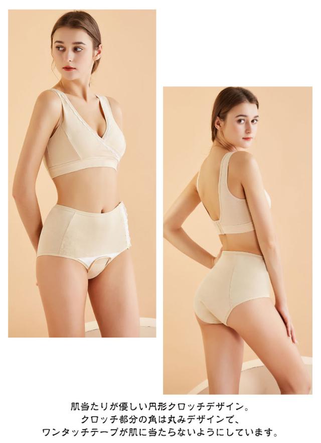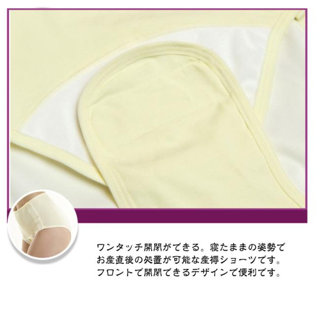 | 妊娠中のママにおすすめ♪産褥ショーツ 3枚セット! クロッチ部分は開閉できるデザインで、診察やナプキン交換等に便利です。産後はサニタリーショーツとしても使用できます。 ナプキンの交換や検診が簡単にできる。クロッチ部分がワンタッチテープ仕様なので、楽に開閉可能です。ナプキンの交換や検診も簡単にできます。 肌当たりが優しい円形クロッチデザイン。クロッチ部分の角は丸みデザインで、ワンタッチテープが肌に当たらないようにしています。 腰まである幅広デザイン!腰まである幅広防水デザインで、万が一の漏れにも安心です。就寝時でも安心して使えます♪ 通気性が良いコットン使用!出産前後の敏感なお肌に優しいコットンを使用した産褥ショーツです。適度にフィットする伸縮性を持ち、快適に一日を過ごせます。 ワンタッチ開閉ができる。寝たままの姿勢でお産直後の処置が可能な産褥ショーツです。フロントで開閉できるデザインで便利です。 包み込みような優しいフィット感!ごわつかず伸縮性もあってストレスフリーなフィット感です。お尻からウエスト周りまで、優しく包み込みます。 | |