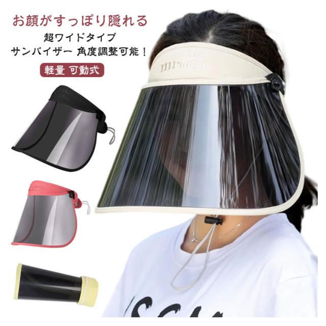 ワイド レインクリアバイザー レインバイザー おしゃれ UVカット 日焼け防止 帽子 メンズ あご紐付き クリアサンバイザー 紫外線対策 サンバイザー フェイスカバー 角度調節 レディース サンバイザー 軽量 可動式 透明 濡れない 晴雨兼用 スポーツ アウトドア 自転車