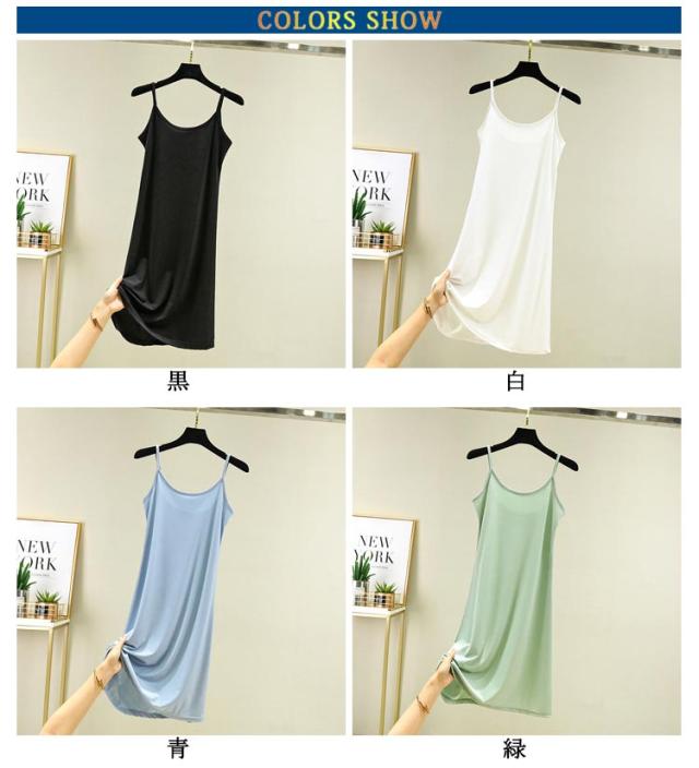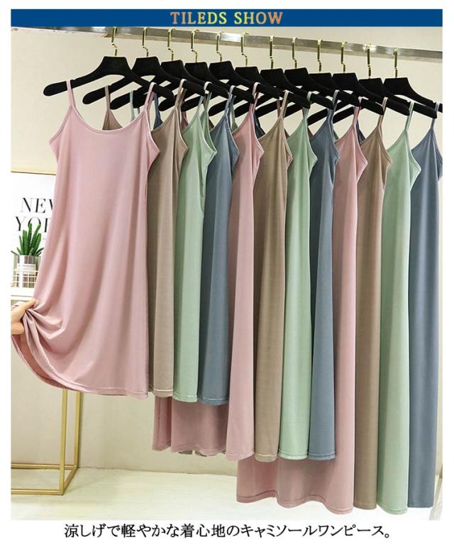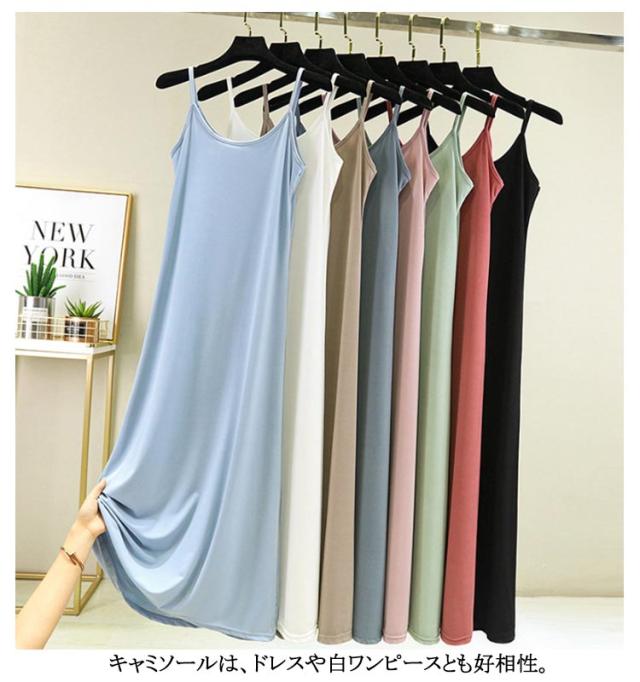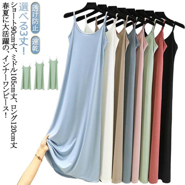 夏 薄手 インナーワンピース スリップ レディース マキシ丈 速乾 ストレッチ 透け防止 ノースリーブ シンプル 蒸れない サラサラ キャミソールワンピース 透け防止 ロング 無地 ルームウェア 選べる着丈