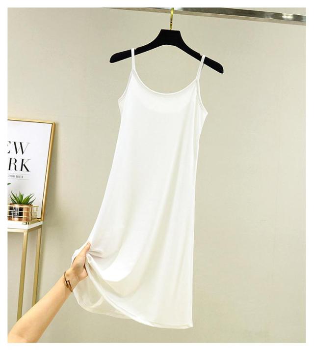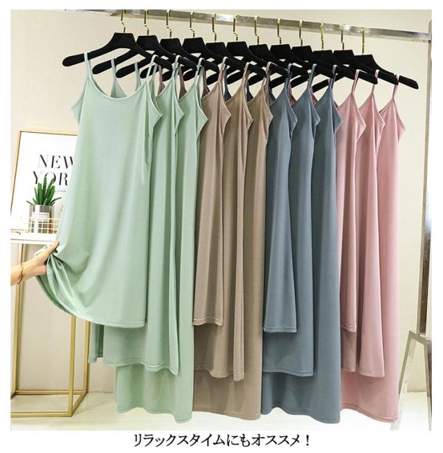 | 選べる3丈!ショート90cm丈、ミドル105cm丈、ロング120cm丈 春夏に大活躍の、インナーワンピース! 涼しげで軽やかな着心地のキャミソールワンピース。 リラックスタイムにもオススメ! モダールコットンの素材なので柔らかな肌ざわりが心地よく、よく伸びます。 キャミソールは、ドレスや白ワンピースとも好相性。 | |