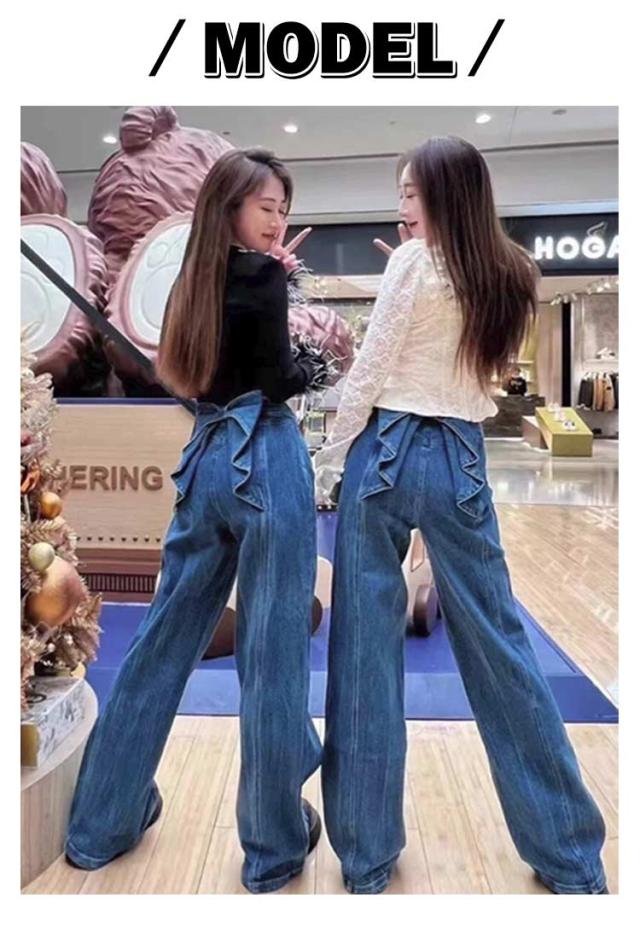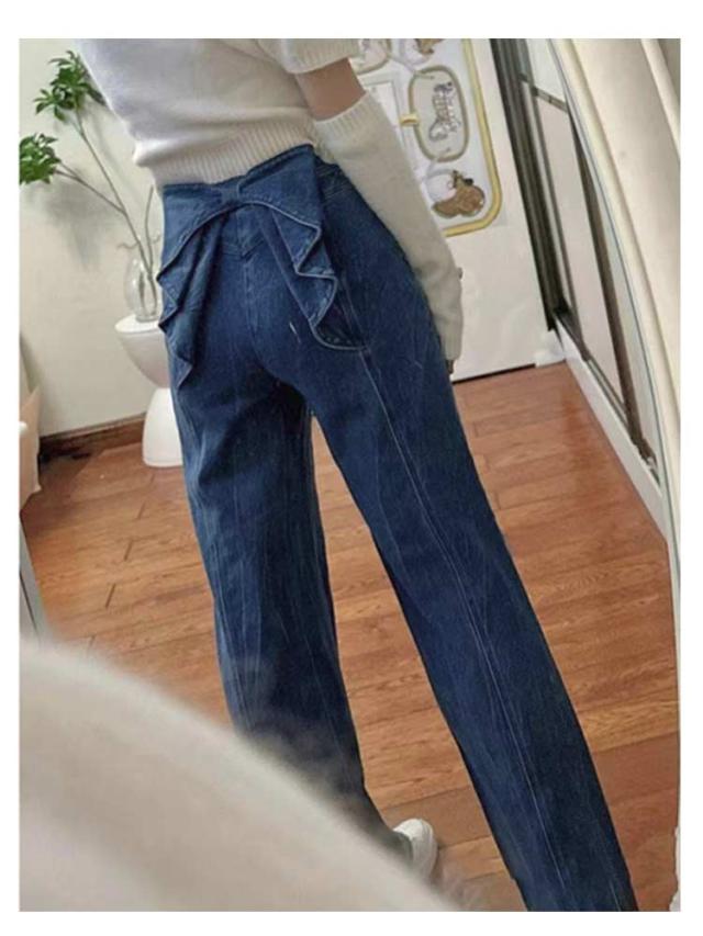 デニム レディース おしゃれ デニム フレアパンツ 春 夏 ワイドパンツ 脚長効果 ジーンズ バックリボンデニムパンツ ジーパン レトロ モード ワイドデニムパンツ 美脚パンツ 美脚ライン デニム 春秋 秋冬 秋 冬 きれいめ かわいい