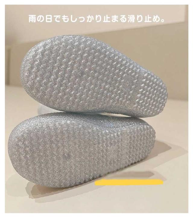 | プリンセスの靴みたいなキラキララメのレインシューズです。 ふんわり可愛いパステルカラーに。 大きめのリボンがポイント☆ 雨の日でもしっかり止まる滑り止め。 汚れても簡単に拭き取れる防水仕様。 雨の日でも気持ちが楽しくなります。 | |