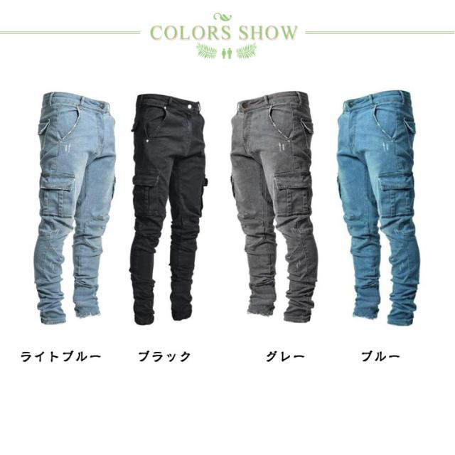 スキニー ダメージ パンツ スキニー 大きいサイズ ストレッチ ジーパン テーパード デニムパンツ カーゴパンツ メンズ スリム スキニーデニム 作業着 作業ズボン ジョガーパンツ 伸縮性 長ズボン ワークデニム タイト ジーンズ ロングパンツ 春