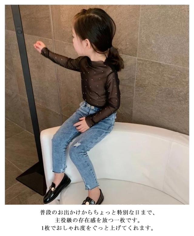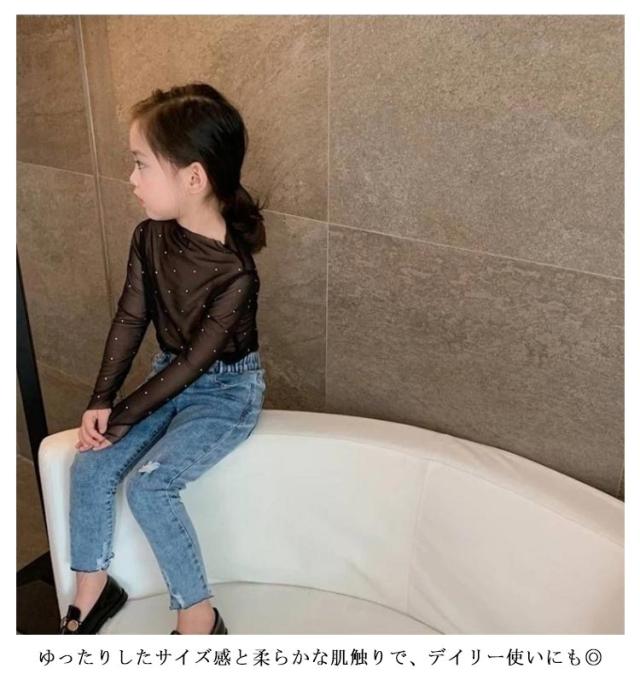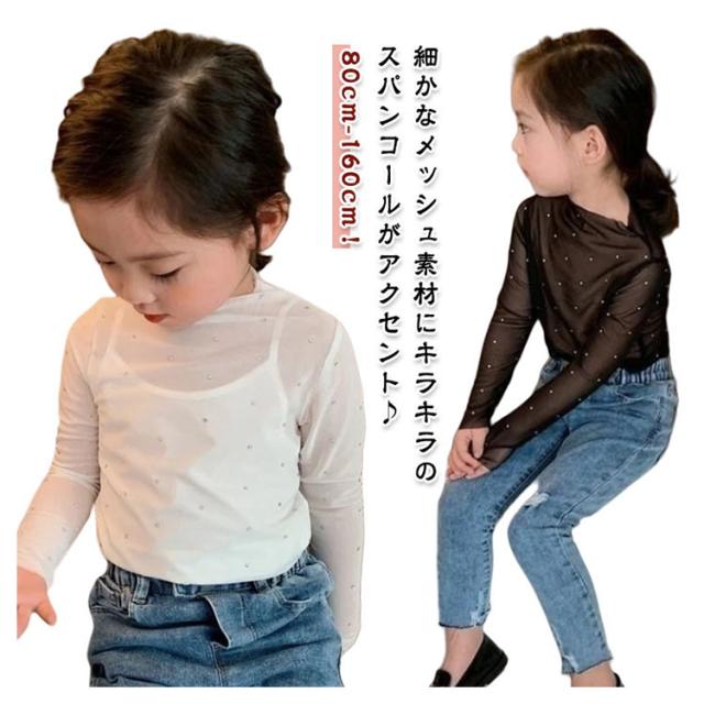 カジュアル 長袖 シンプル カットソー 女の子 春夏 トップス 子供服 キッズ 無地 重ね着 メッシュ ダンス衣装 透け感 シアー 長袖 インナートップス ブラック ホワイト 白 黒 通気性 オシャレ 子供用