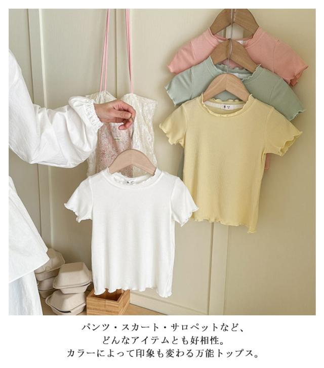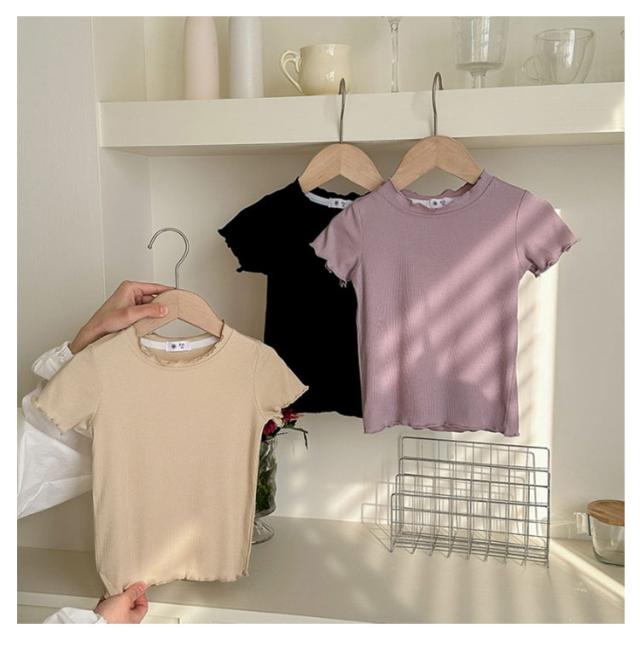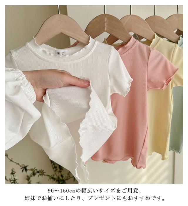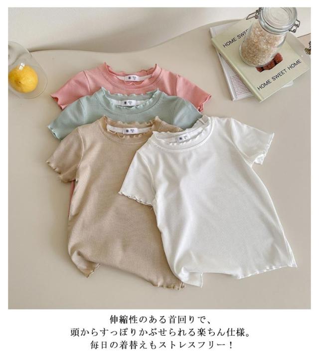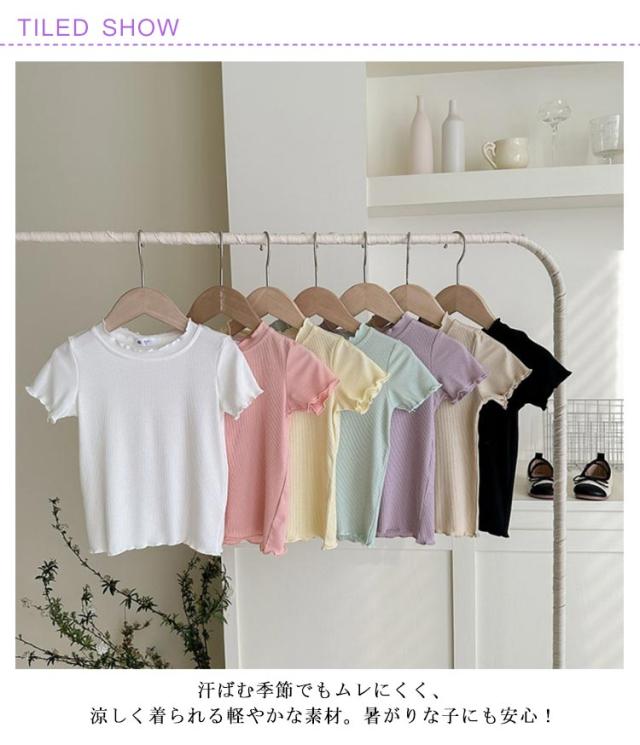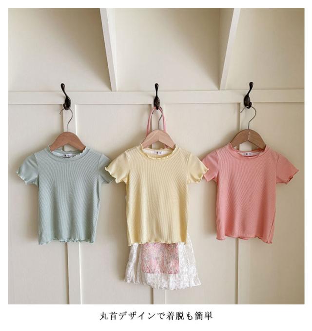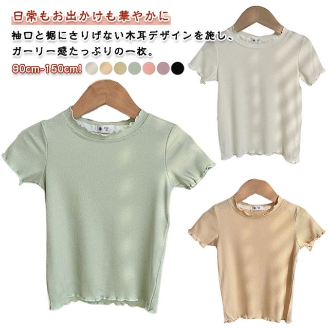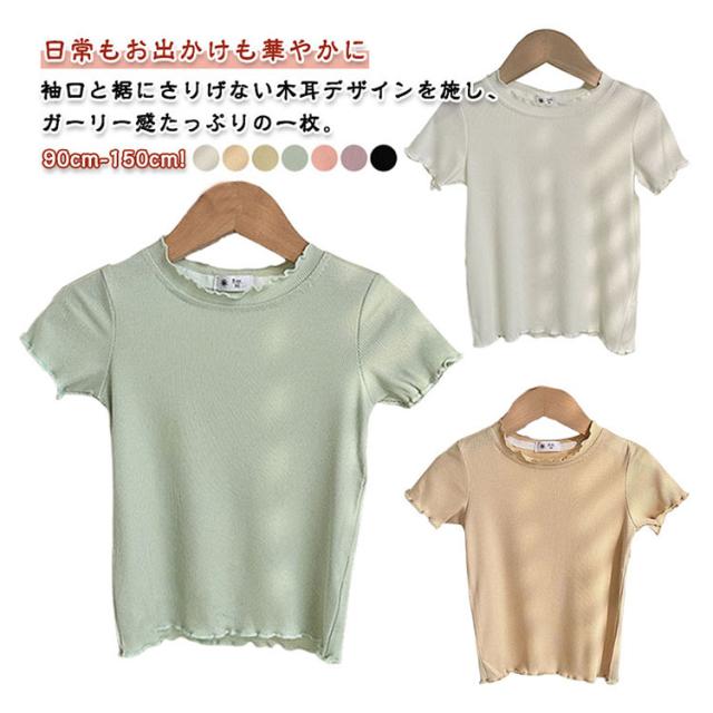 ガールズトップス 女の子 Tシャツ キッズTシャツ 夏服 フリル袖 ベビー服 半袖 無地 シンプルトップス 子供服 木耳デザイン 丸首 可愛い 夏用 おしゃれ ナチュラル 夏服 カジュアルTシャツ