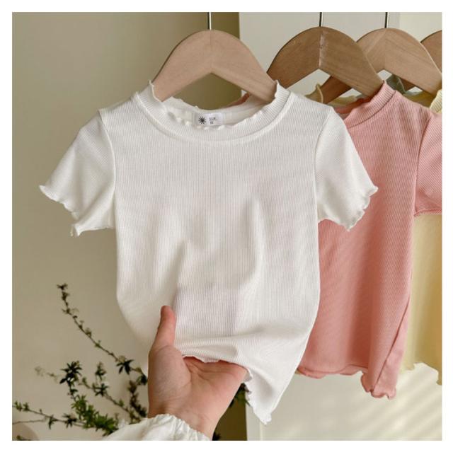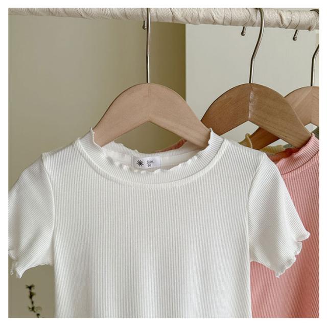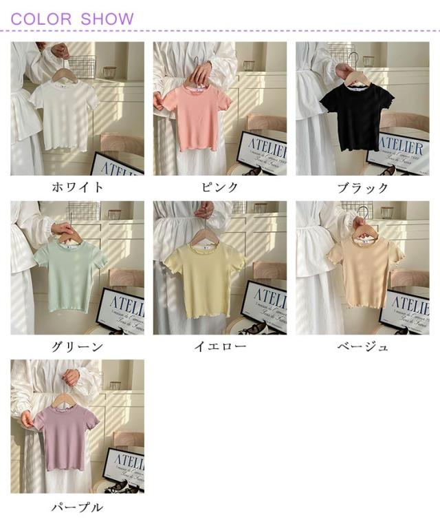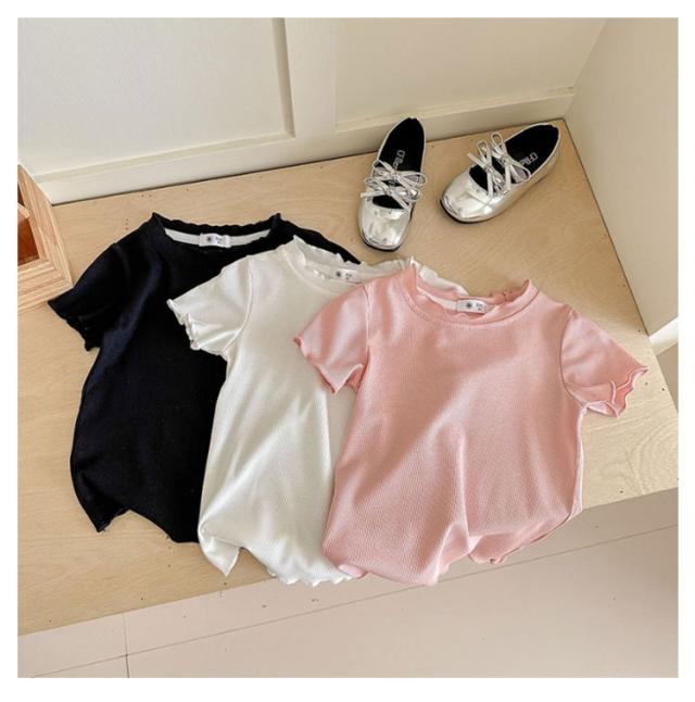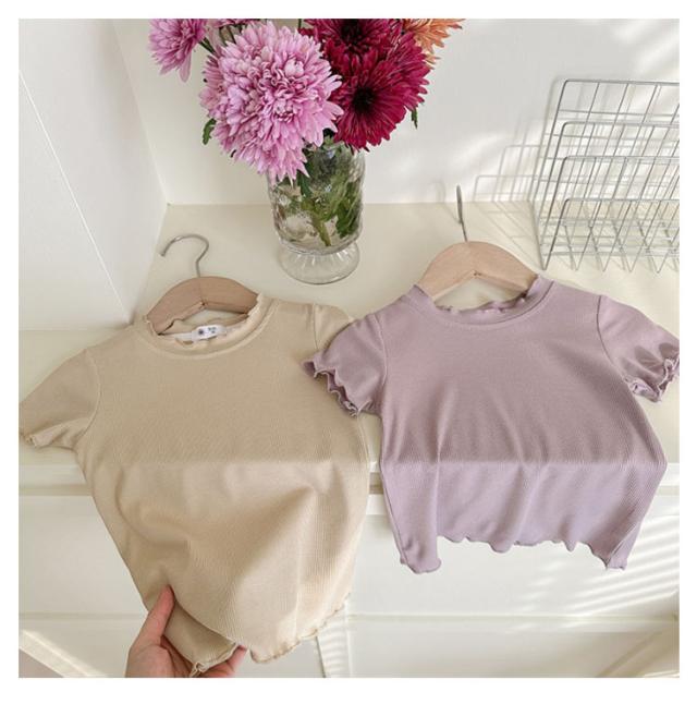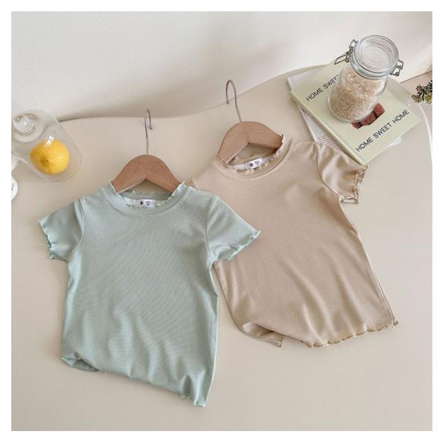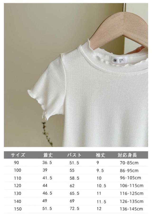 ガールズトップス 女の子 Tシャツ キッズTシャツ 夏服 フリル袖 ベビー服 半袖 無地 シンプルトップス 子供服 木耳デザイン 丸首 可愛い 夏用 おしゃれ ナチュラル 夏服 カジュアルTシャツ