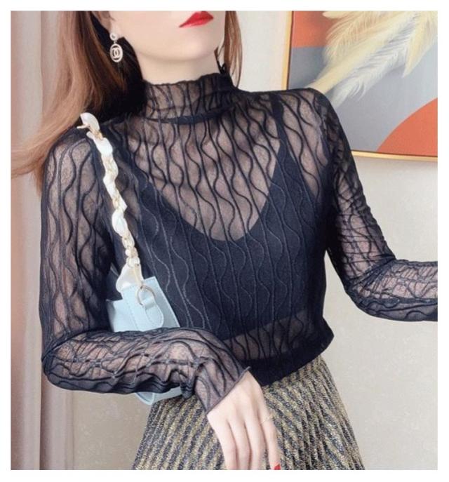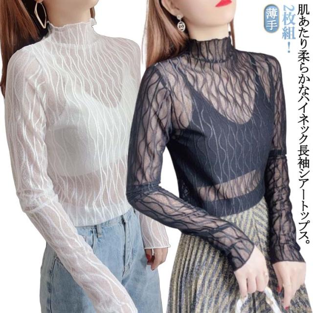トップス シースルーレース チュールトップス 長袖 シアー 2枚組 インナー シアートップス メッシュブラウス インナー tシャツ Tシャツ 透け感 レイヤード 薄手 カットソー シアートップス レディース レディース インナー カットソー シースル メロウフリル