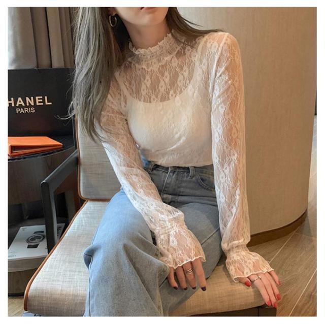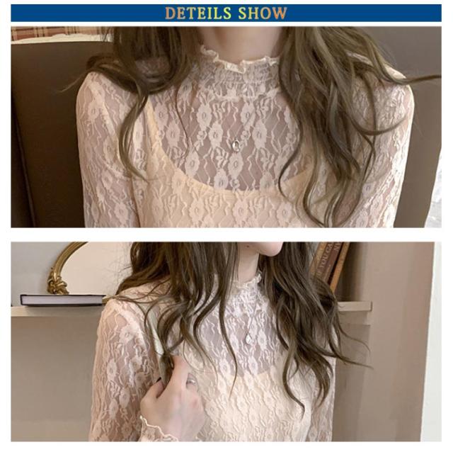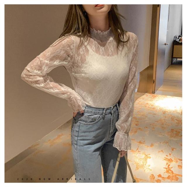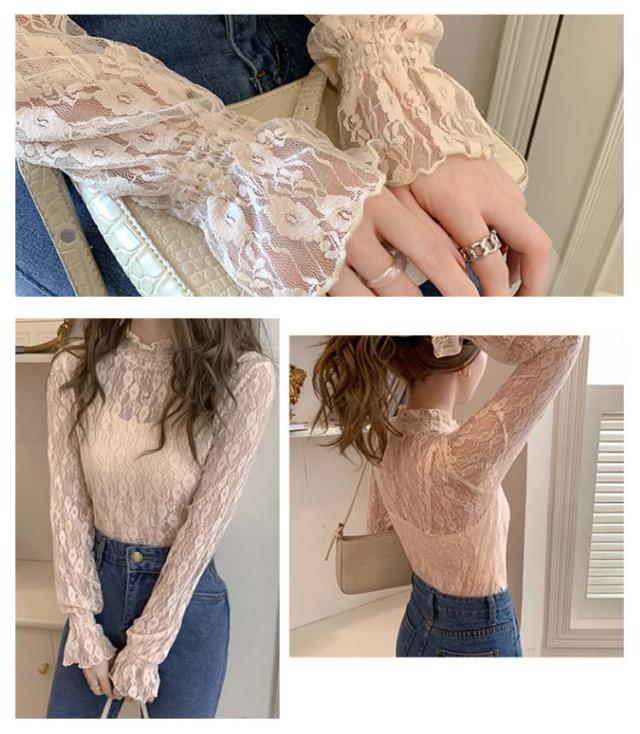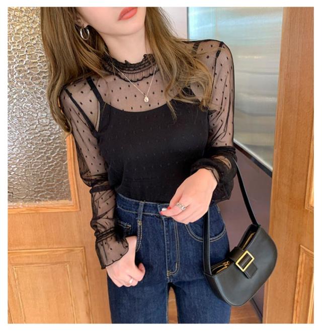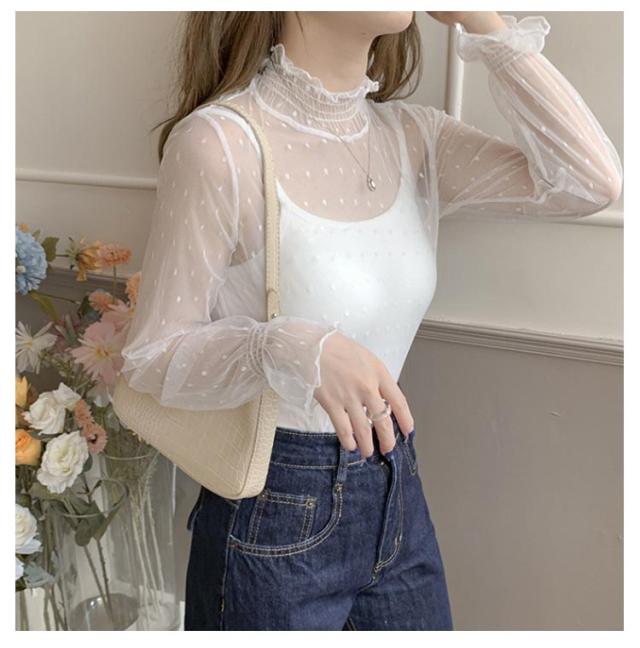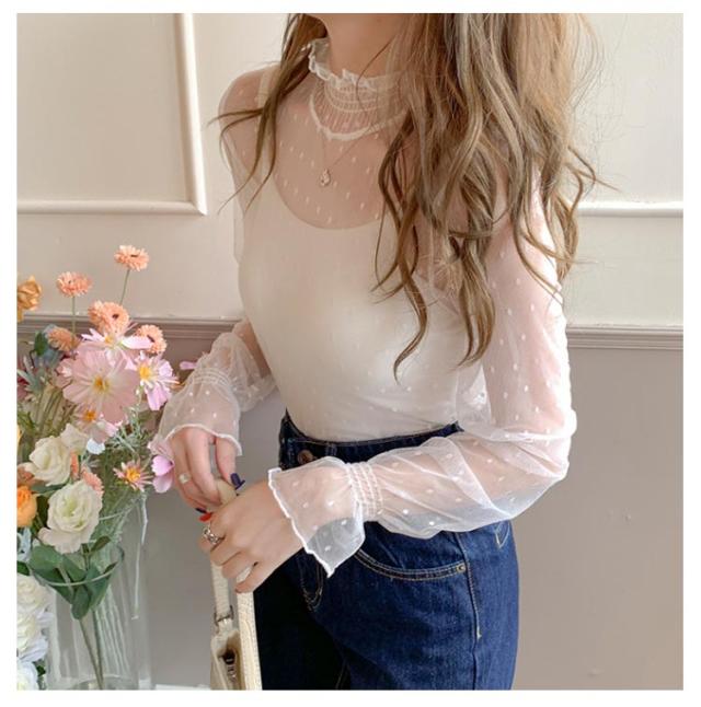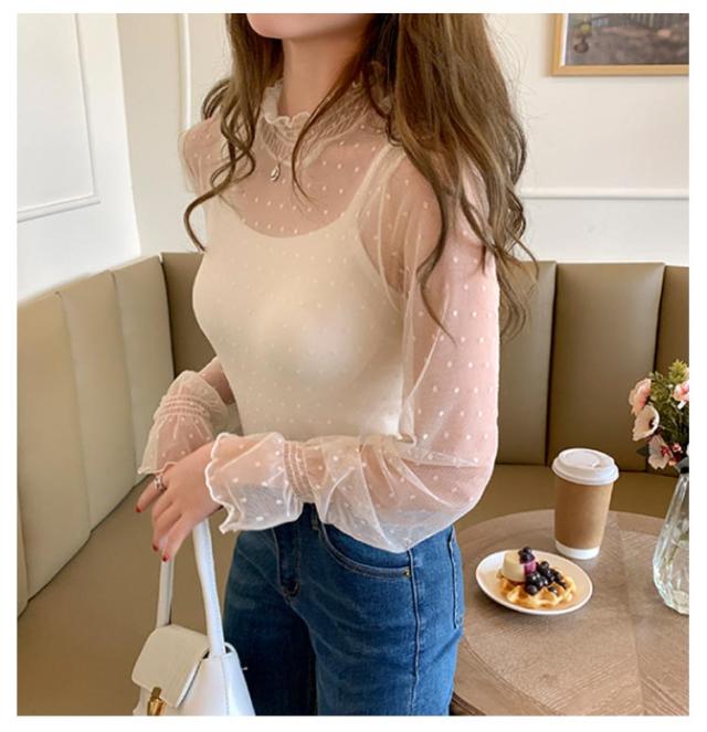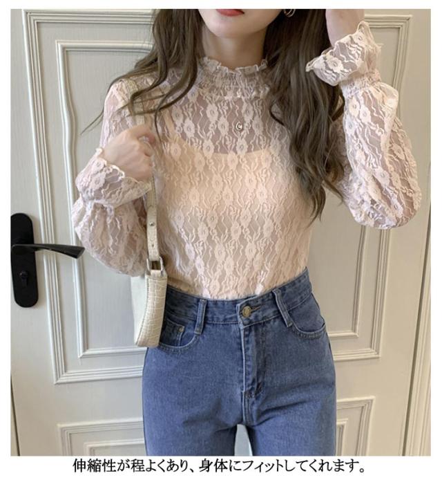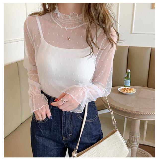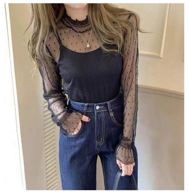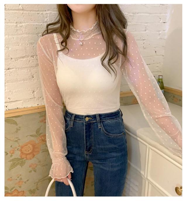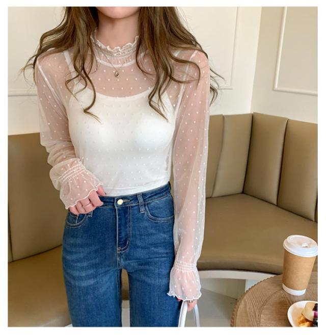 レディース シースルー レディース タートルネック トップス レース シアー 春 チュール シーアーブラウス カットソー タートル 長袖 セクシー シアートップス 肌透け ハイネック メッシュ 透け感 オフィス レイヤード ドット柄 紫外線対策