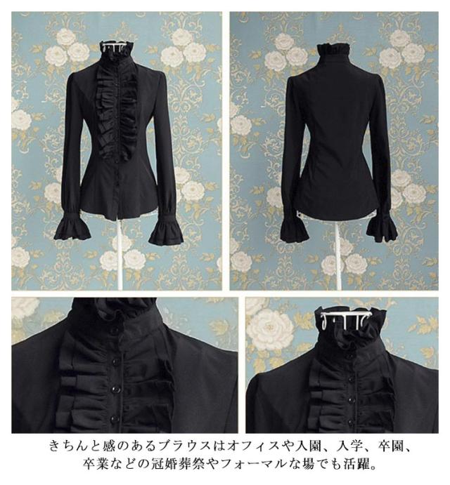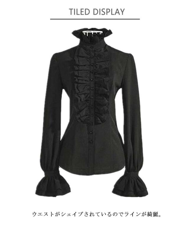 レディース ゴスロリ フリルブラウス 長袖シャツ フリルシャツ フォーマル ブラウス スタンドカラー 長袖ブラウス ブラウス ゴスロリ 長袖 姫袖 おしゃれ ロリィタ フリルカットソー シャツ 大きいサイズ ホワイト ブラック トップス 重ね着