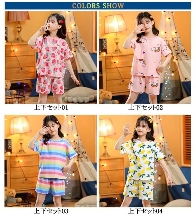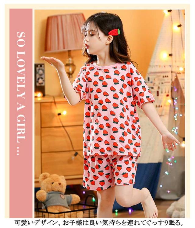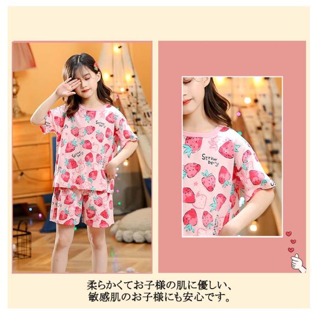 イチゴ柄 110 ベビー 120 キッズ 苺 夏物 女の子 Tシャツ 半袖 上下セット ショートパンツ 綿 140 ジュニア パジャマ 90 100 いちご ルームウェア イチゴ柄 130 150 160 170 セットアップ かわいい おしゃれ 部屋着