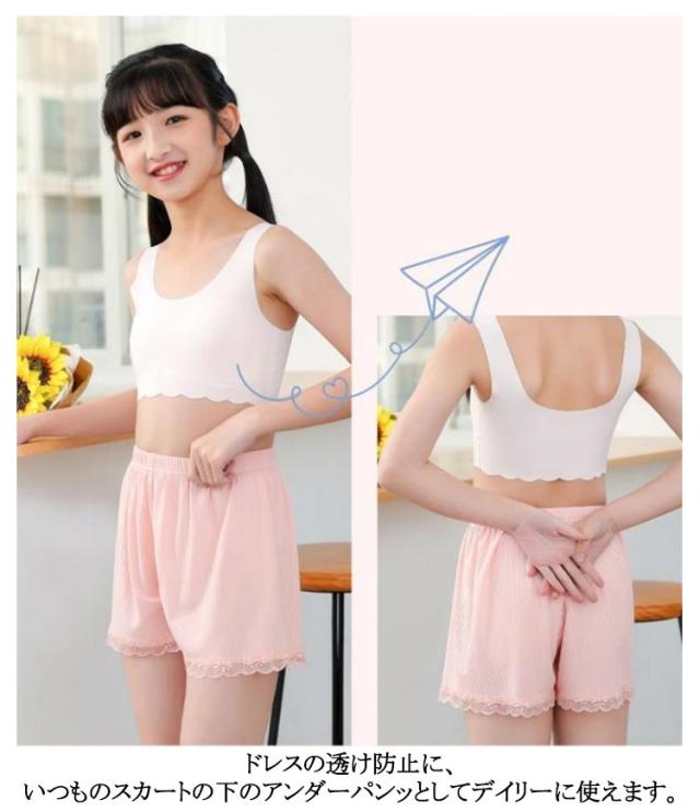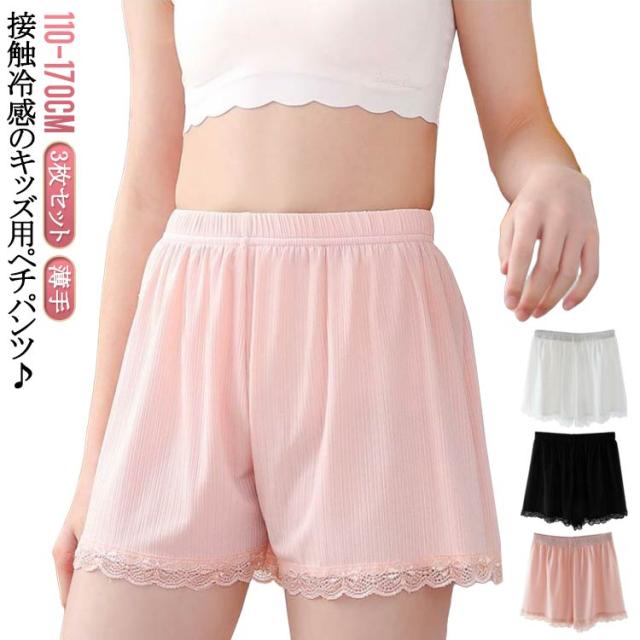 ペチパン ジュニア ペチコートパンツ インナーパンツ かわいい 見せパン 肌着 透け防止 女の子 裾レース 子供用 薄手 安全パンツ キッズ 3分丈 チラ魅せ 下着 中学生 かわいい ペチパンツ 3枚セット 高校生 小学生 110 120 130 140 150 160 子供